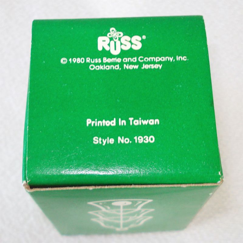 This boxed glass bells decoration was made in 1980 for Russ Berrie Company and comes in its original box. The three tiered transparent red bells hang one below the other for a total length of 4-1/2 inches, not including the hanging cord. They make a nice crystal tinkling sound. The ornament is in excellent condition with no wear or damage.
