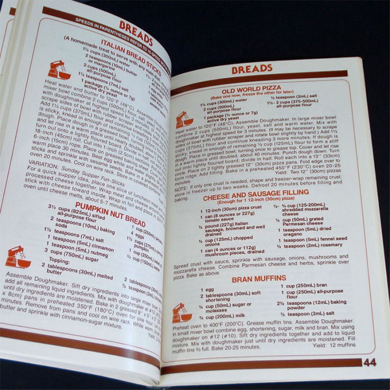 The 114 page manual has very thorough instructions and charts for assembly and operation of all units, plus an extensive collection of recipes. All the original paperwork that came with the Kitchen Center is present. Everything is super clean and working with little to no sign of use or wear. After careful wrapping and double boxing, the parcel weighs about 30 pounds and will be oversize.