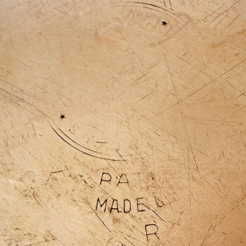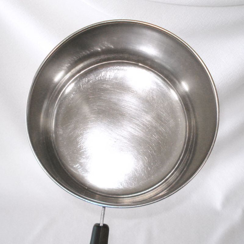This is a vintage 3 quart Revere Ware copper bottom stainless steel saucepan, 5-1/4 inches deep by 7-3/8 inches diameter. The stainless steel finish is clean with minor fine surface marks from cleaning, use, and storage though it has darkened some from 50-plus years of use. The copper bottom has some burner scuffs but was recently polished and gleams nicely. There are no dents or dings. This is heavy USA made Revere Ware with the original Process Patent mark on the bottom. It's an earlier version, more than half an inch bigger than the 3 quart saucepans made after 1958.