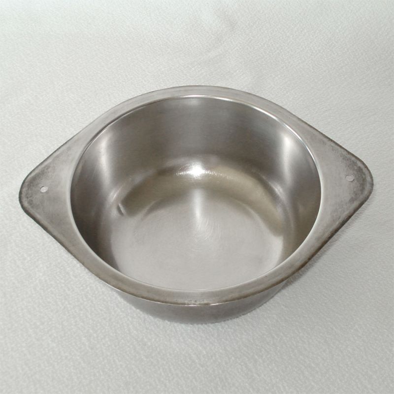 This is a Mid Century Revere Ware 1 quart copper clad saucepan with lid, 3 inches deep by 5-3/4" diameter. It came with a 2-cup capacity stainless steel double boiler insert pan, but I'm not sure if the insert is original. The insert has a small, shallow line ding inside, and the saucepan also has one just above the copper/stainless line near the bottom (see third photo, bottom edge at about the 7 o'clock position). You have to look closely to see them, and they don't affect cooking performance. The saucepan is USA made Revere Ware, marked on the bottom with the original Process Patent logo which was in use from 1946 to 1968.