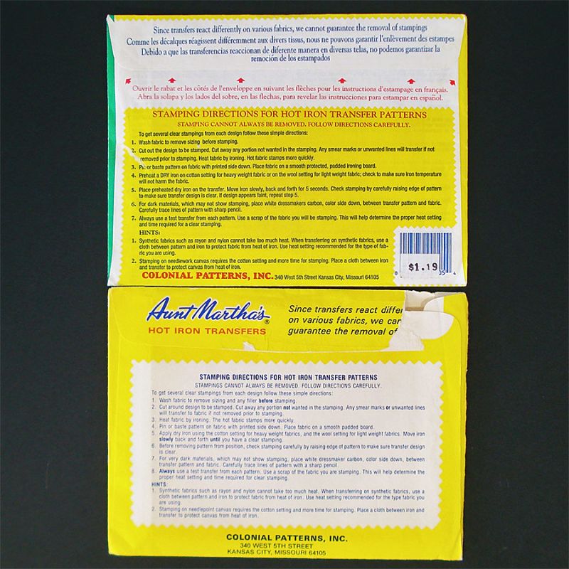 Number 3863 is titled simply Pillow Slips. Four pretty floral designs are shown, but as a long time customer of this company, I know there are almost always at least eight designs inside. The other packet is number 3542, Charm Pillow Slips. Again, four designs shown: flower basket, Southern Belle sunbonnet girl, flower basket, and birds with flower garland. If purchasing more than one transfer pattern packet, I'll refund any excess postage.