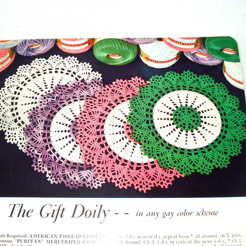 This is Star Doily Book number 128 by American Thread, titled simply Doilies - New, Easy to Follow Instructions for Crocheted, Knitted, Flower, and Ruffled Doilies. The booklet is dated 1956 and has instructions for nine different styles of doilies, including beaded. In very good vintage condition with no tears, stains, or writing.