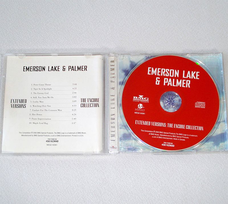 Emerson Lake & Palmer Extended Versions Encore Collection classic rock used compact disc. BMG Music / Madacy Entertainment Canada copyright 2004. Photos are of the actual item for sale, not stock pictures. Clean, scratch-free disc. Tested, plays well. Storage scuffs to case, no cracks.