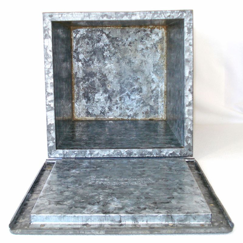 This nostalgic 1950s galvanized steel milk box would typically sit on the front porch to keep your milk cold when the milkman made his pre-dawn delivery. It has a big red Meadow Gold logo on the front and a hinged lid. The box measures about 12-1/2 inches high by 10-1/2"square. It's very clean with no rust and little wear, just a bit to the red logo. The hinge is intact and seals very well. Made by the Cumberland Case Company of Chattanooga Tennessee.