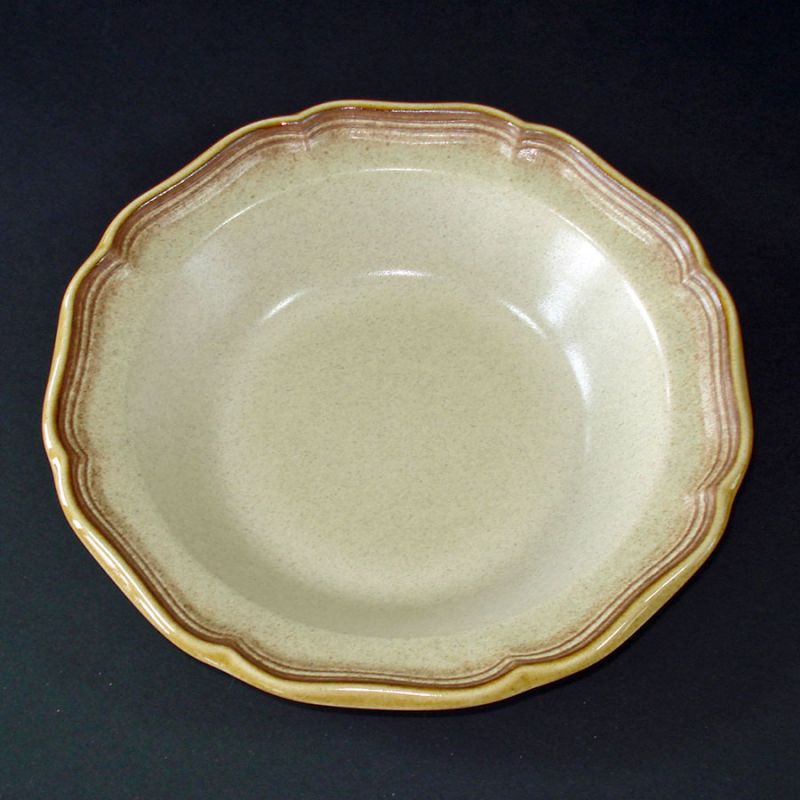 This vegetable or serving bowl is in Mikasa's Whole Wheat stoneware pattern E8000. Undecorated, it will mix and match perfectly with any of the (at least) 18 decaled patterns in the Whole Wheat series like Jardiniere, Granola, Loves Me, and Autumn Song. It measures 10 inches diameter by 2-1/2 inches high. Likely never used, the bowl is in perfect condition with no wear or damage at all. The glaze is completely intact with no utensil or even stacking marks. Two identical bowls are available. See my other listings for more Whole Wheat pieces.